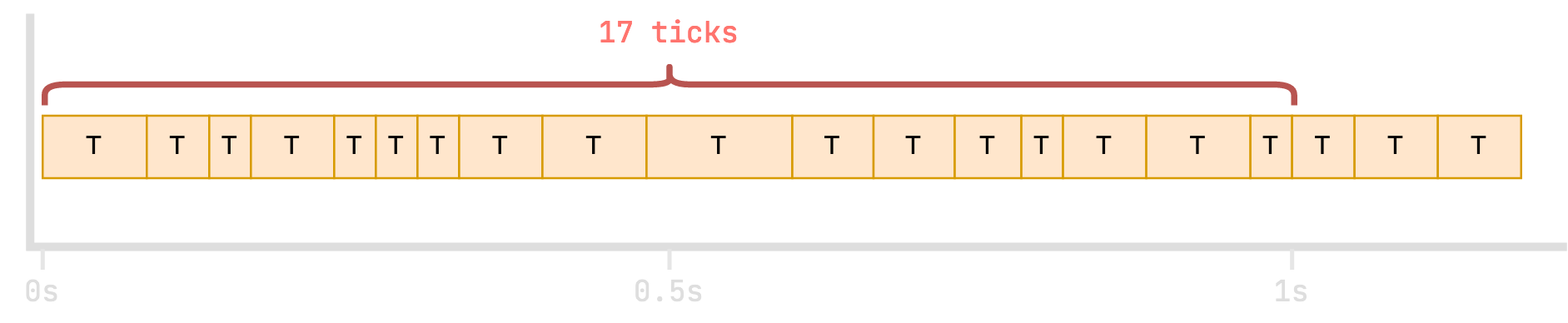Of course, the amount of work required in each tick varies, depending on what's happening in the game, so ticks will in practice never be this regular!